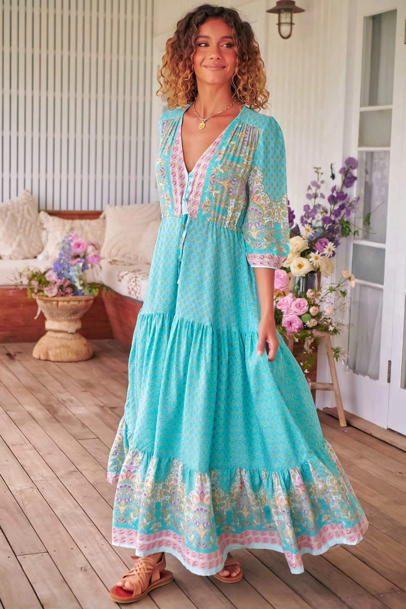 JAASE - Tessa Maxi Dress: A Line Pull Tie Waist Dress in Atlantis Print